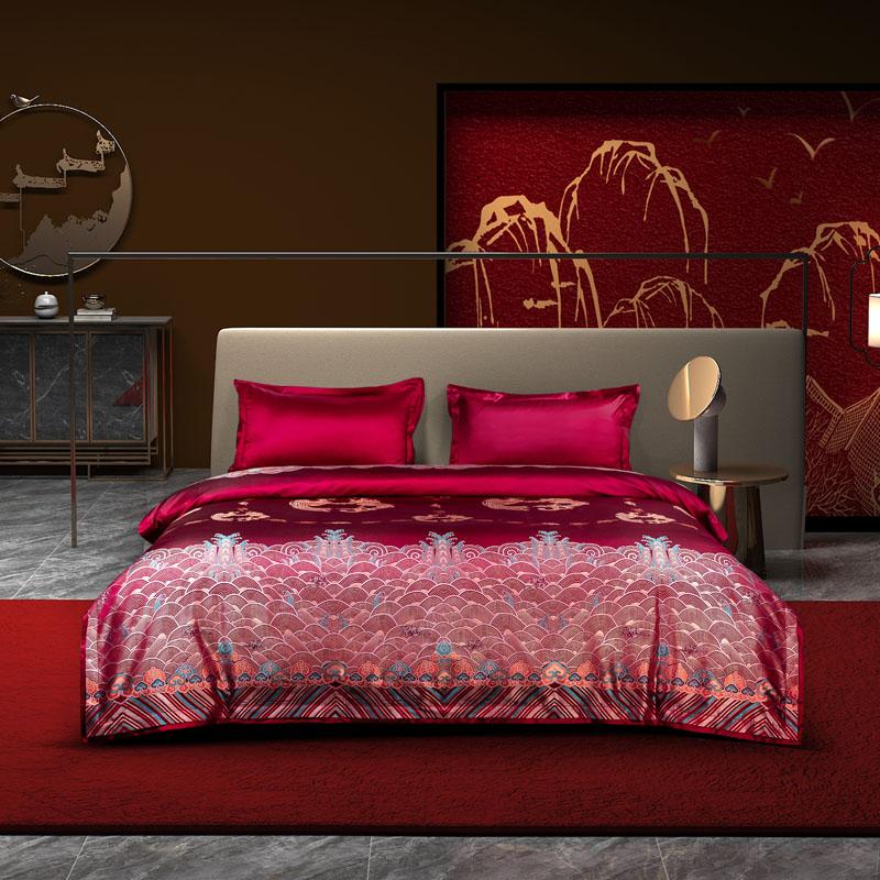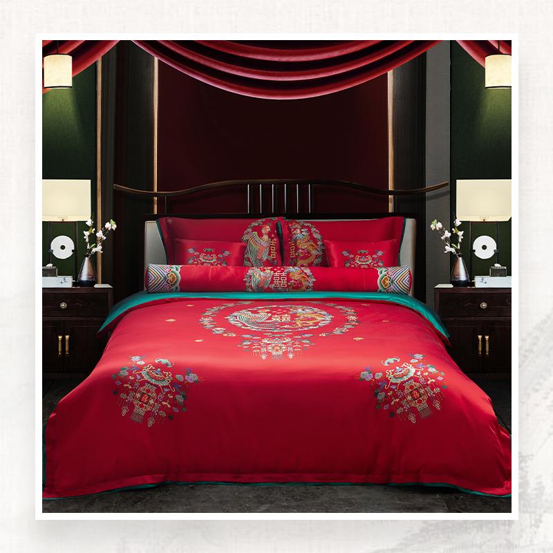 以《光绪大红色八团龙凤双喜袍》为设计灵感,山海寓意天下四海升...